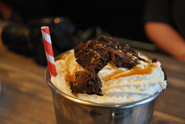It's almost time for what you all want to see and read about - the food! But first, lets talk drinks. At Filthy Gorgeous you have a selection of craft beers, draught beer (pabet blue ribbon schooner a good old red neck beer). Batch cocktails which are pre-mixed but shaken upon order, shots (because who doesn't like the sound of their 'coco the pineapple whisperer' - grilled pineapple with coconut tequila) a decent wine list and ding ding ding - my winner, the Milkshakes!